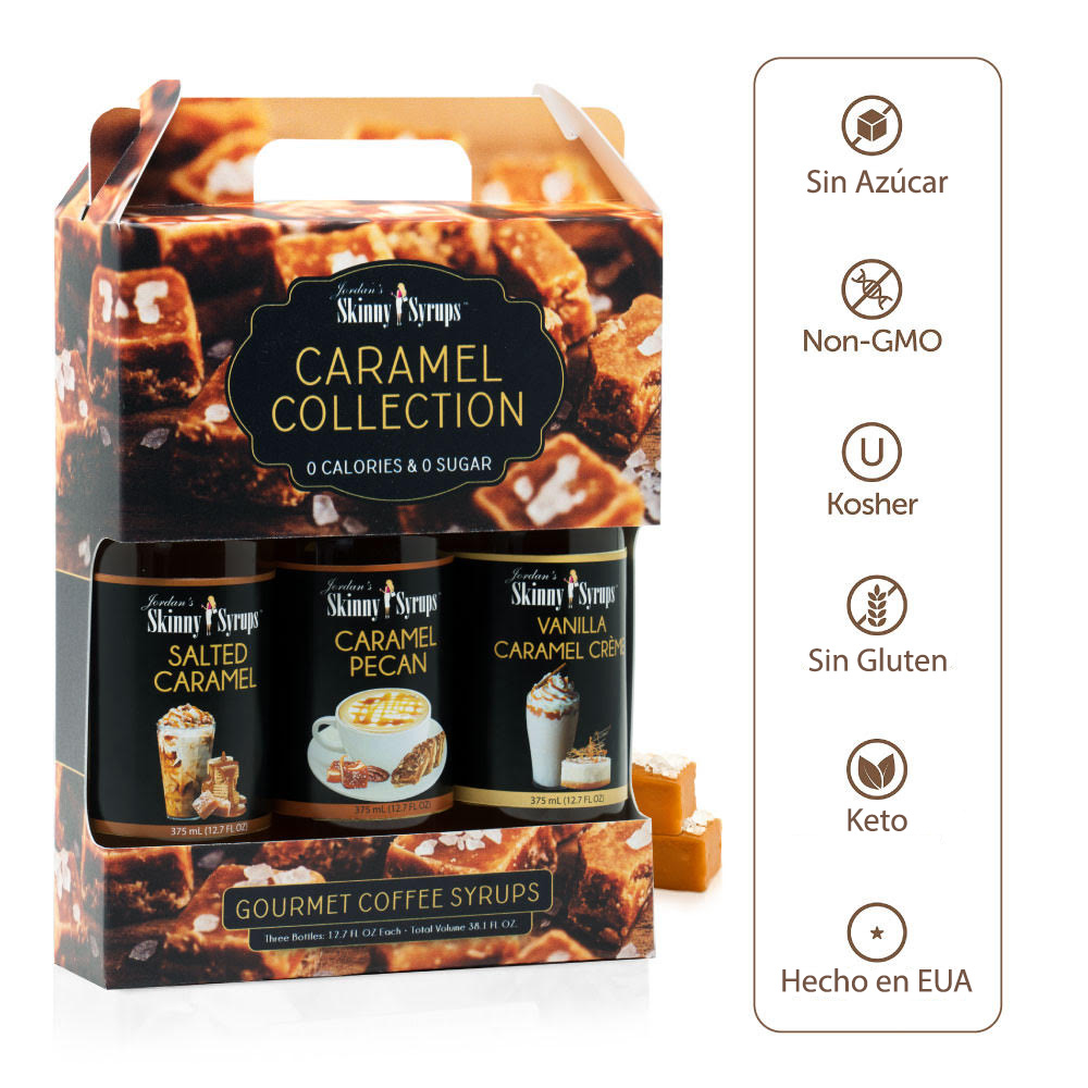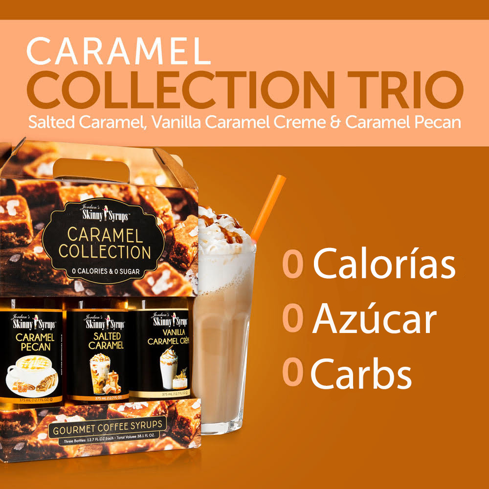 Deliciosa variedad de nuestros jarabes más vendidos en una deliciosa caja de regalo. 3 botellas de 12.7 oz de cada sabor: Caramel Pecan, Salted Caramel, Vanilla Caramel Crème (Caramelo y nuez pecana, Caramelo Salado, Crema De Caramelo y Vainilla) Agregue sabor libre de culpa a cafés, lattes, batidos de proteínas, batidos, horneados, avena o casi cualquier cosa.